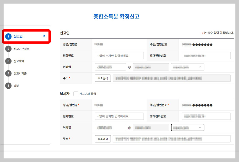 ⑧ 종합소득세 신고 확인을 위한 '주민번호 입력'