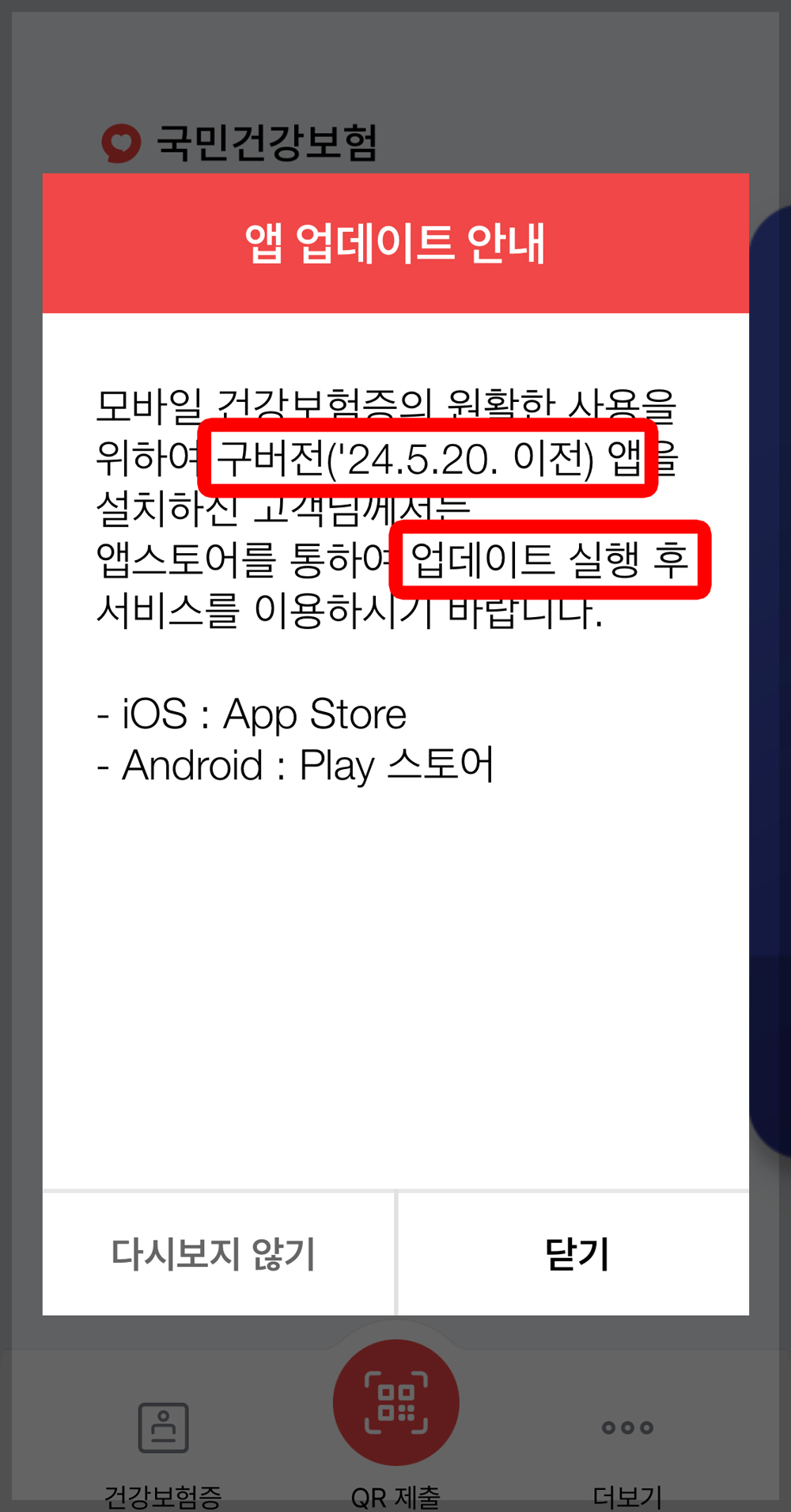 5월 20일 이전에 앱을 다운받으신 분들앱 업데이트를 진행해주세요!