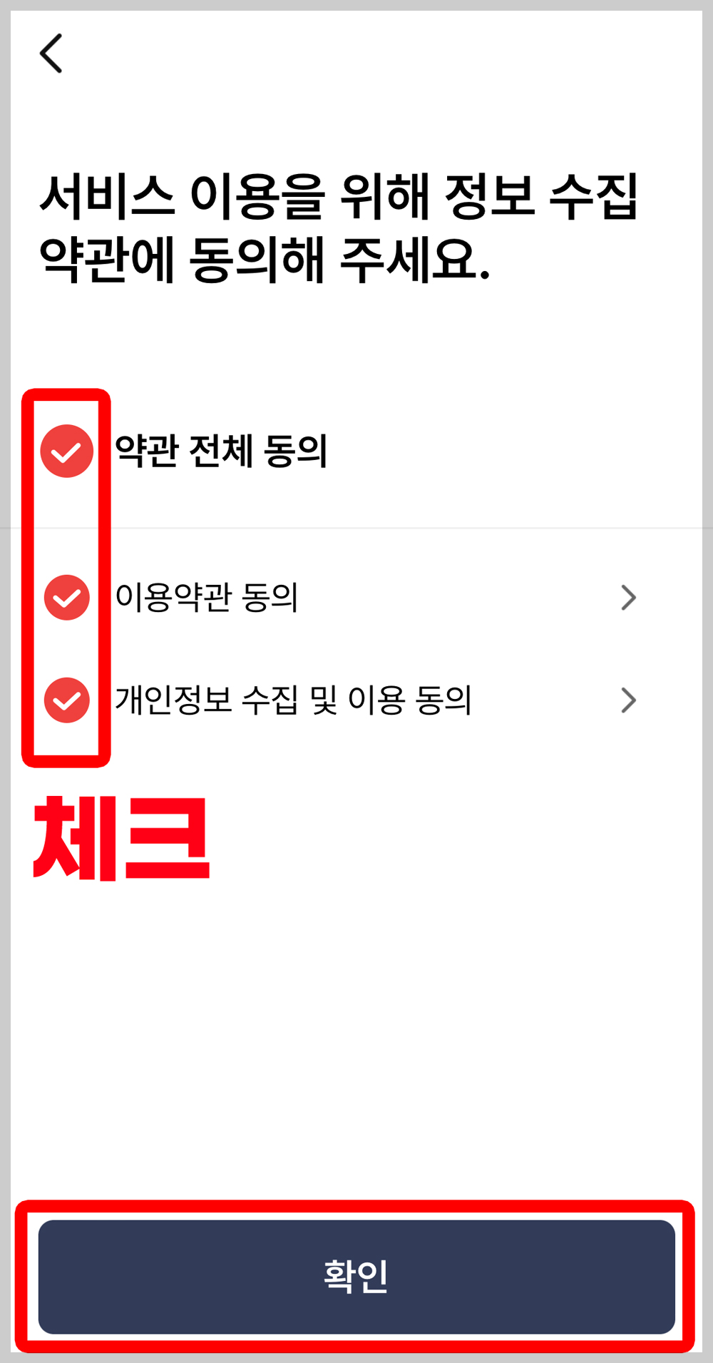 ③ 안내사항 3가지 확인 ▶ '확인' 클릭