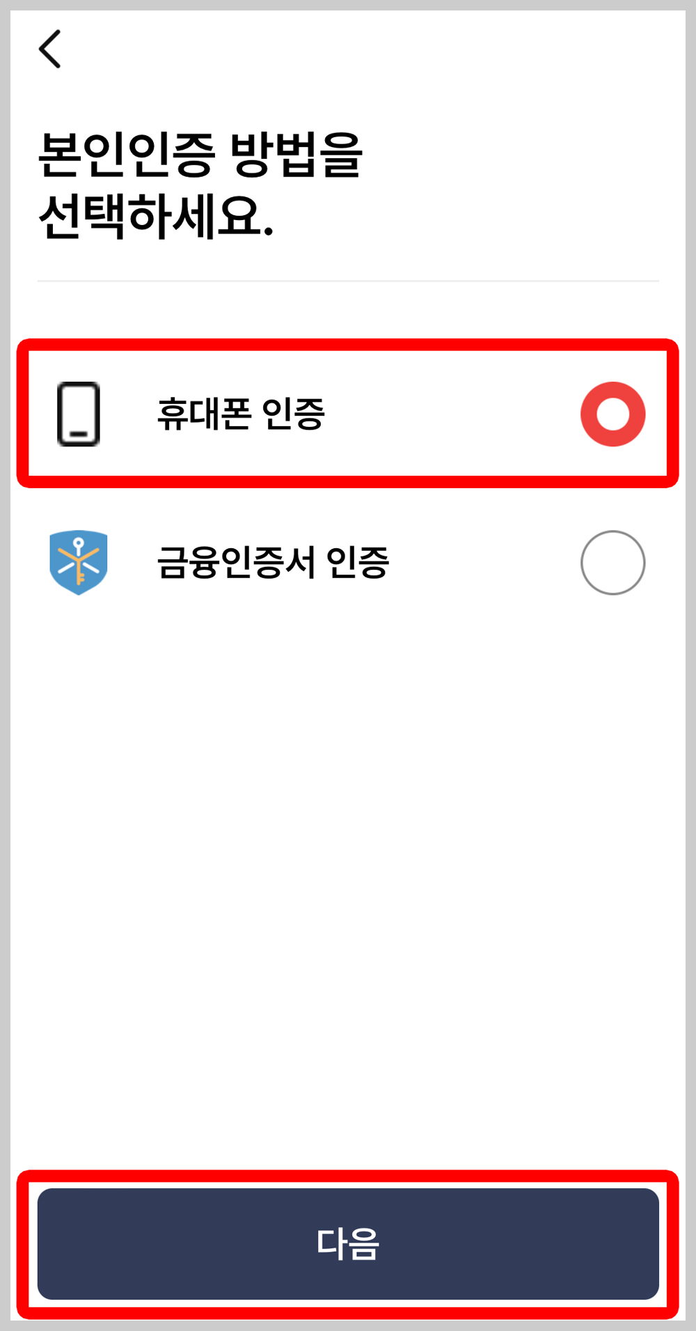 휴대폰, 금융인증서 중에서 편한 방법으로 진행하시면 됩니다