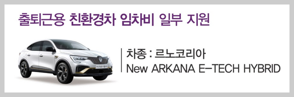 - 임차비 지원: 친환경 하이브리드 차량 임차비 20만원 지원